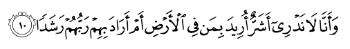 `Dan bahawa sesungguhnya kami tidak mengetahui adakah (dengan adanya kawalan langit yang demikian) hendak menimpakan bala bencana kepada penduduk bumi, atau pun Tuhan mereka hendak melimpahkan kebaikan kepada mereka?