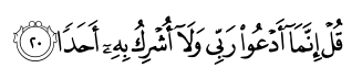 Katakanlah (wahai Muhammad): "Sesungguhnya aku hanyalah beribadat kepada Tuhanku semata-mata, dan aku tidak mempersekutukanNya dengan sesiapapun".
