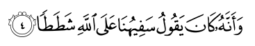 `Dan (dengan ajaran Al-Quran nyatalah) bahawa sesungguhnya: (ketua) yang kurang akal pertimbangannya dari kalangan kita telah mengatakan terhadap Allah kata-kata yang melampaui kebenaran;