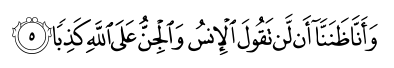 `Dan bahawa sesungguhnya (nyatalah kesalahan) kita menyangka bahawa manusia dan jin tidak sekali-kali akan berani mengatakan sesuatu yang dusta terhadap Allah.